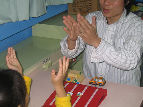 转换:让孩子拍手或做一些其它的事情来转换刚才教学的情境,以便接下来可以重新诱发沟通。